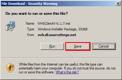his will take you to the sourceforge website where you can download the MSI (the installer) that you will be saving on your Windows Home Server Software Share. Depending on your setup you may need to click on the "direct link" link to start the download process: