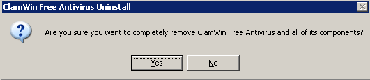 ou will be presented with the following dialog box asking if you are sure you wish to remove ClamWin from your system, select Yes: